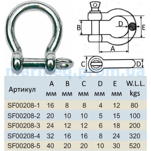 Скоба такелажна, підковоподібна, нержавіюча сталь, 8 мм Арт. SF00208-4